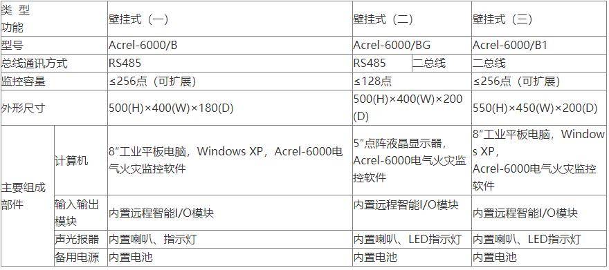 Acrel-6000电气火灾监控系统的监控设备主要是壁挂式,其主要功能及组成部件如下表所示。