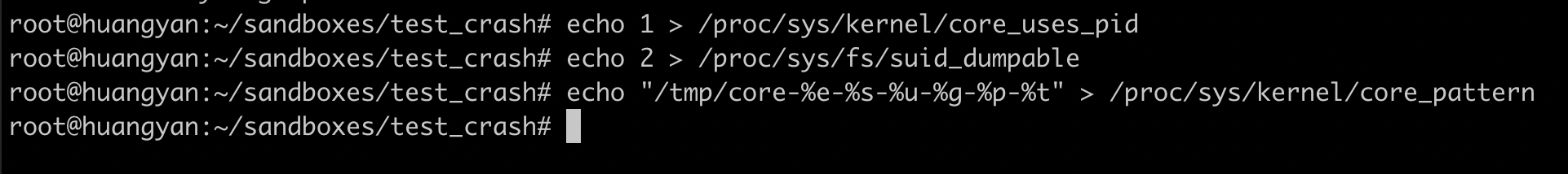 以下命令开启了系统级别一些参数,具体的释义大家可自行谷歌。此处需要注意,我们将 core 文件生成到了 /tmp 目录下,需要保证其磁盘空间足够大:
