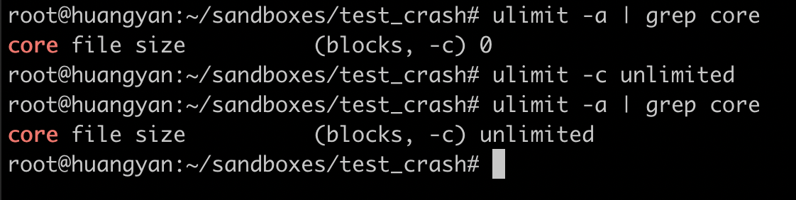 我们还需要调整 MySQL 运行用户的 ulimit,在本文中,MySQL 的运行用户是 root,我们调整其 core file 的限制,使其能生成 core dump: