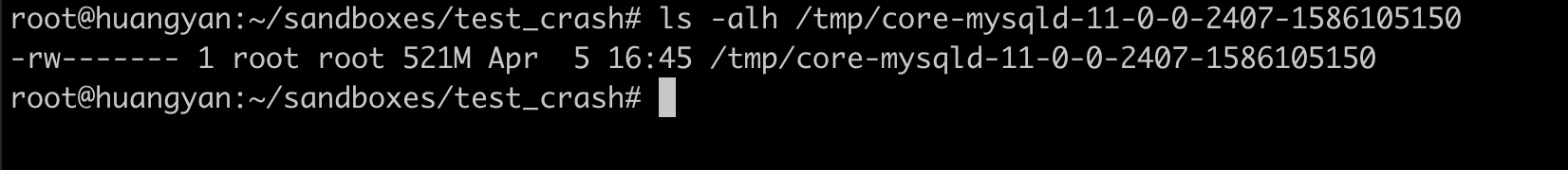 下面我们开启 coredump,让 MySQL 在崩溃时能提供更多信息: