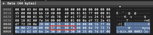 其后的一位 00,是 MySQL 的 command type(https://dev.mysql.com/doc/internals/en/command-phase.html),在此没有意义,我们将其忽略,