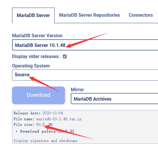 - 通过官网获取四个版本的 MariaDB 安装包。