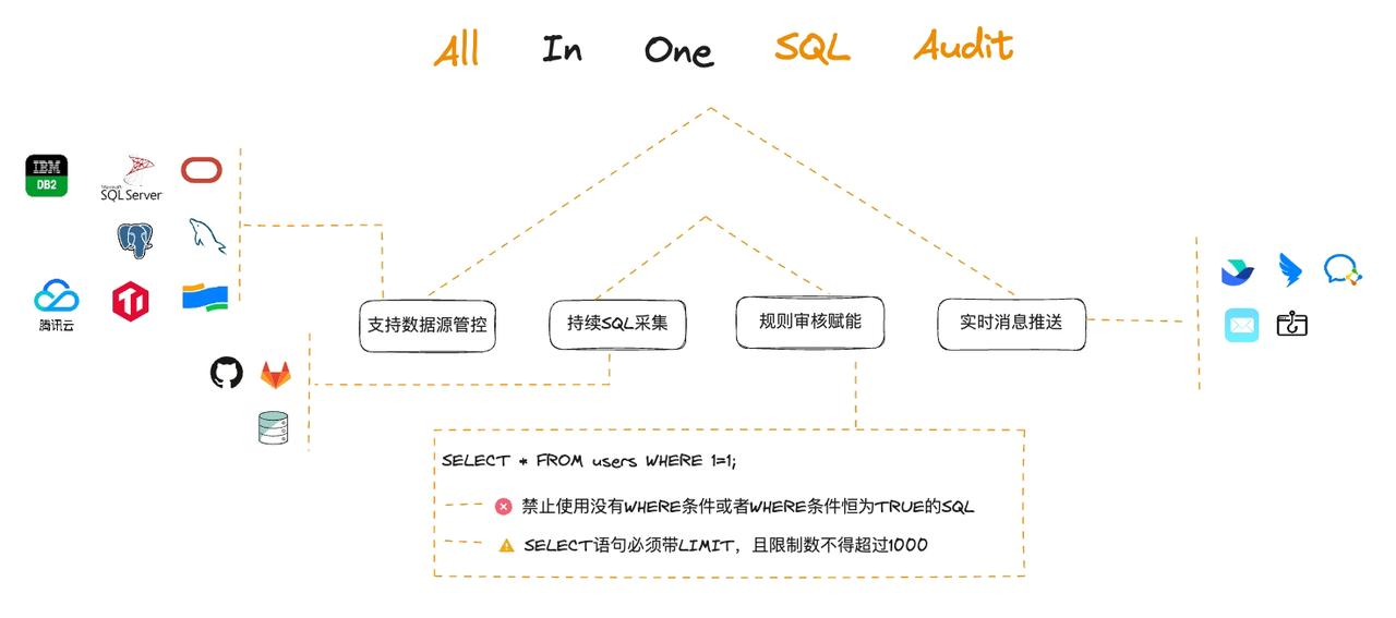 SQLE 是一款全方位的 SQL 质量管理平台,覆盖开发至生产环境的 SQL 审核和管理。支持主流的开源、商业、国产数据库,为开发和运维提供流程自动化能力,提升上线效率,提高数据质量。