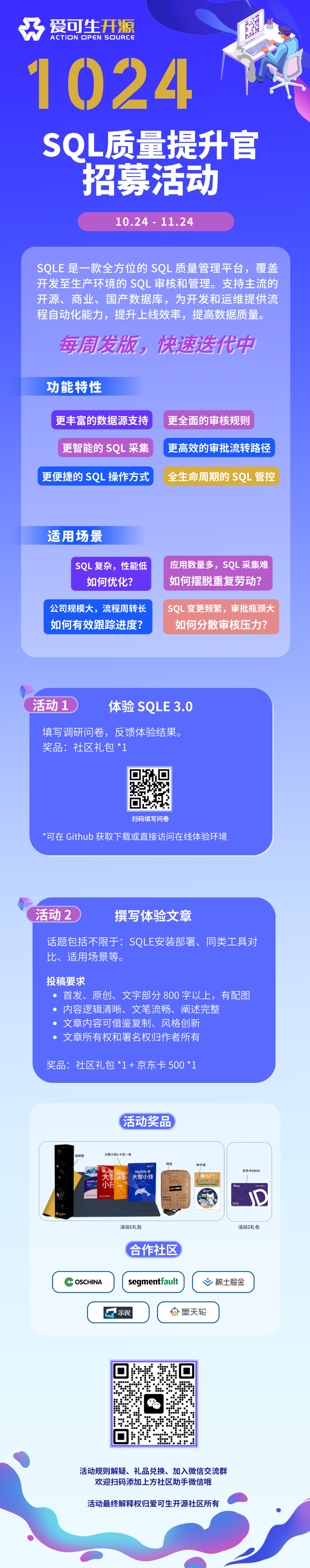 更欢迎参加 1024 特别企划 | SQL 质量提升官招募活动,感受一下 SQLE 的魅力吧~