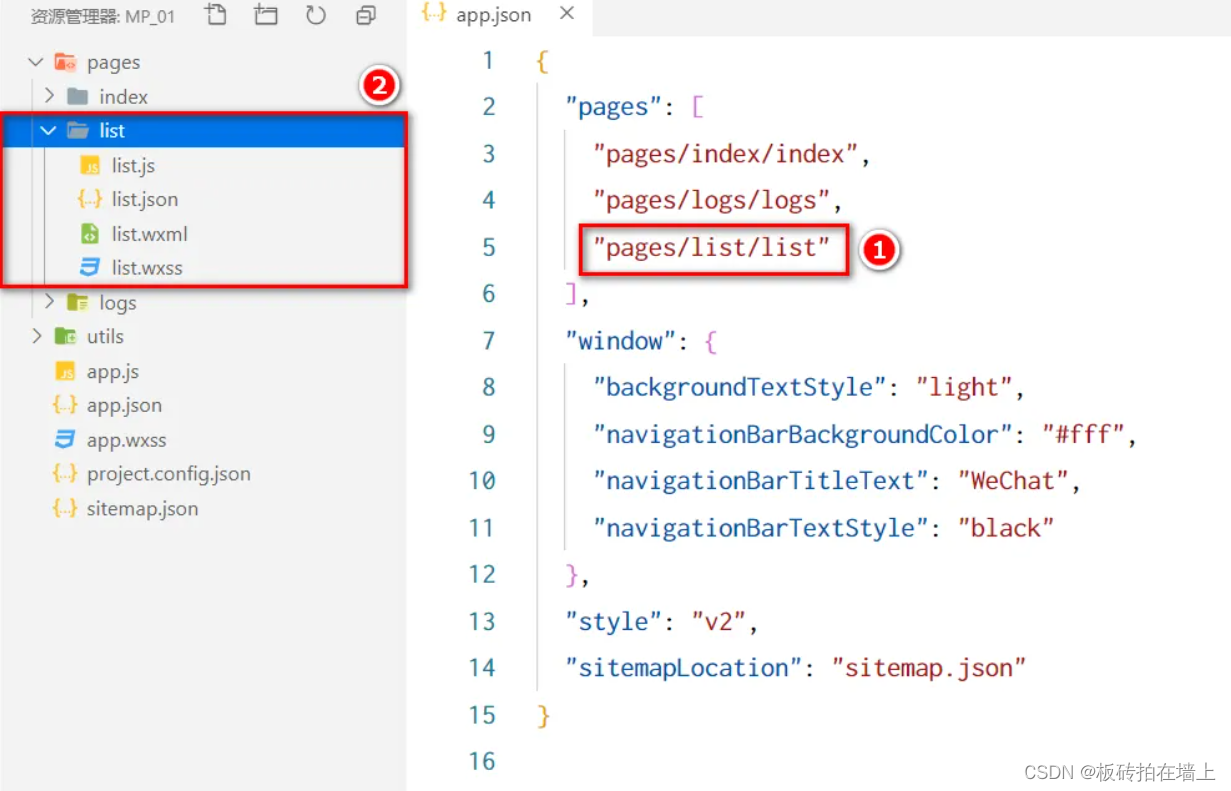 只需要在app.json -> pages中新增页面的存放路径,小程序开发者工具即可帮我们自动创建对应的页面文件,如图所示:
