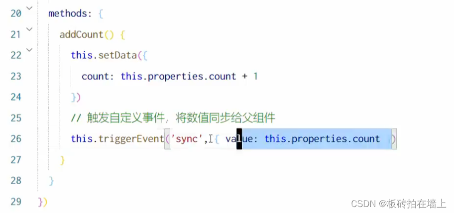 自定义组件触发事件时,需要使用 triggerEvent 方法,指定事件名、detail对象和事件选项: