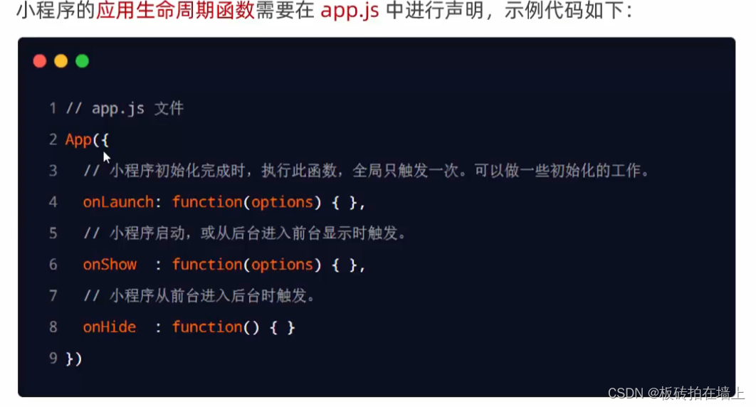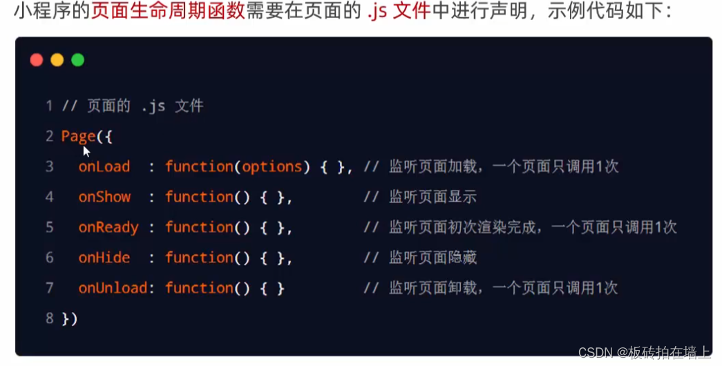 生命周期函数:是由小程序框架提供的内置函数,会伴随着生命周期,自动按次序执行。
