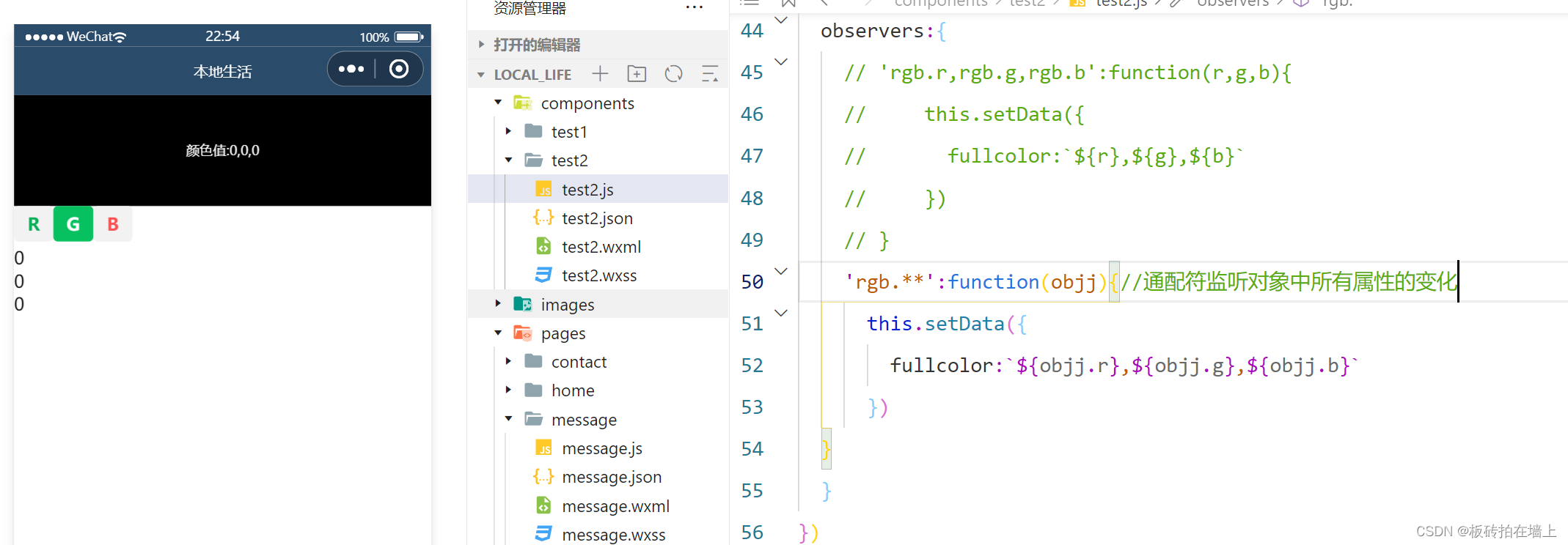 通配符监听对象的属性RGB,这里面的rgb.r,rgb.g,rgb.b都没有用于界面的渲染