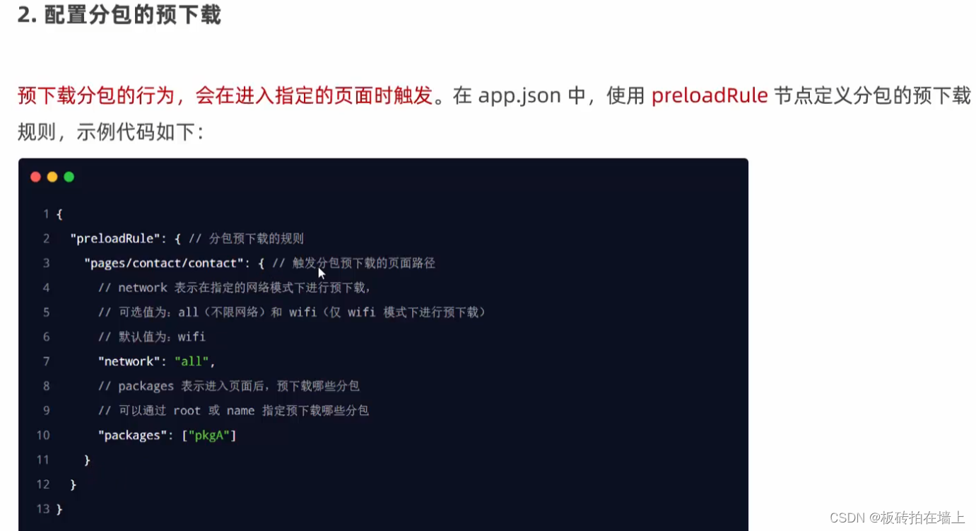 分包预下载指的是:在进入小程序的某个页面时,由框架自动预下载可能需要的分包,从而提升进入后续分包 页面时的启动速度