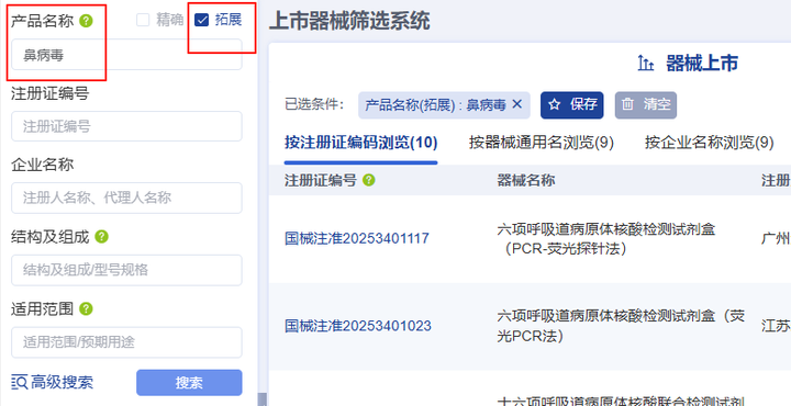 例如在其检索框内输入产品名称后勾选拓展功能便能实现通用名检索,可让检索的信息更加全面。