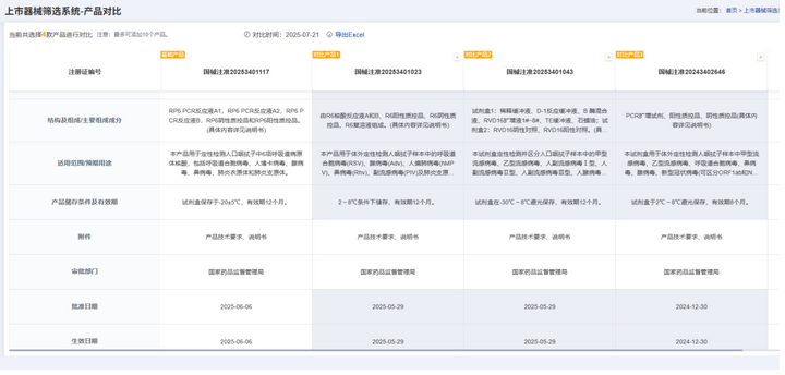 还有产品对比功能,该数据库支持一次对最多10个产品进行横向对比,通过这个功能可以直接对相关产品的结构组成、适用范围等信息横向对比,分析其差异。