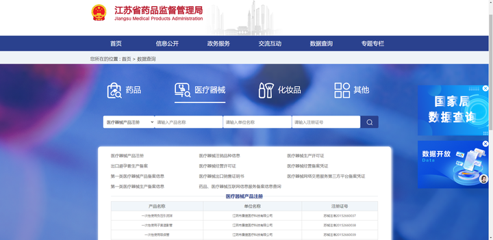 国家药监局和各省市药监局是大家常用的医疗器械注册证查询官方渠道,其中国家药监局官网相对信息全面,但对于国产一二类医疗器械的信息更新可能有一定延迟,如果没查到可以选择对应的地方药监局官网查询。