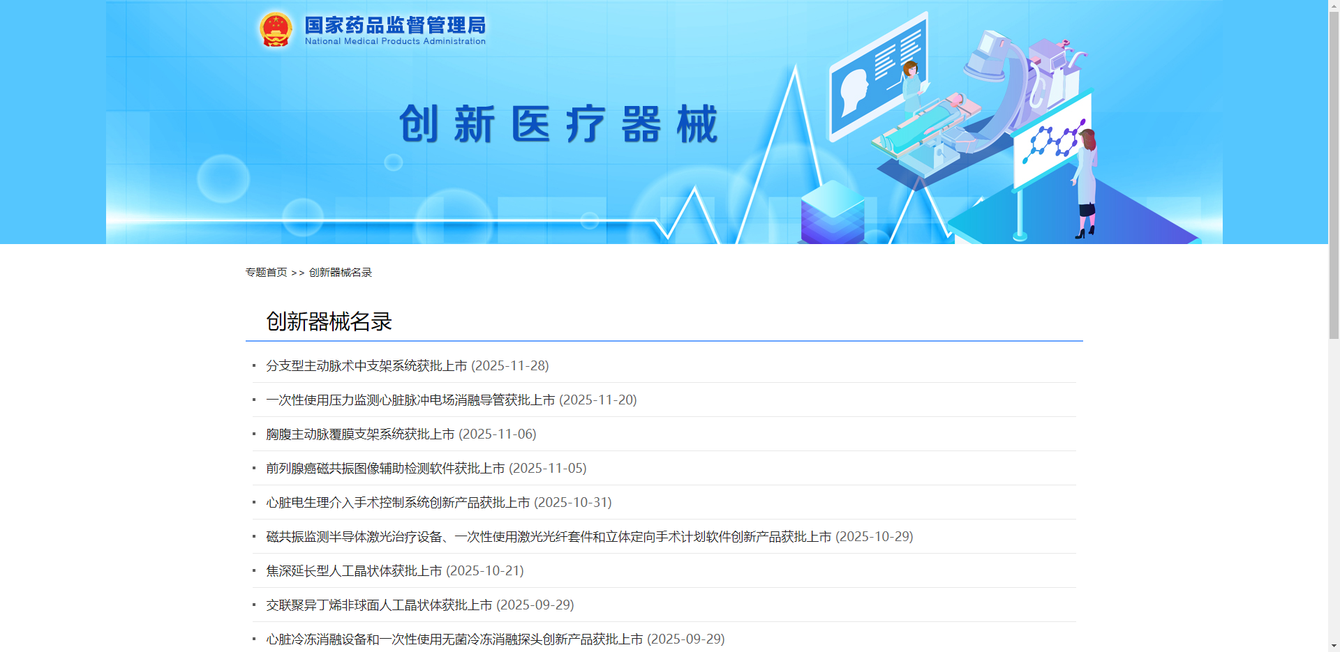 1.1 国家药品监督管理局(NMPA)官网-创新器械名录