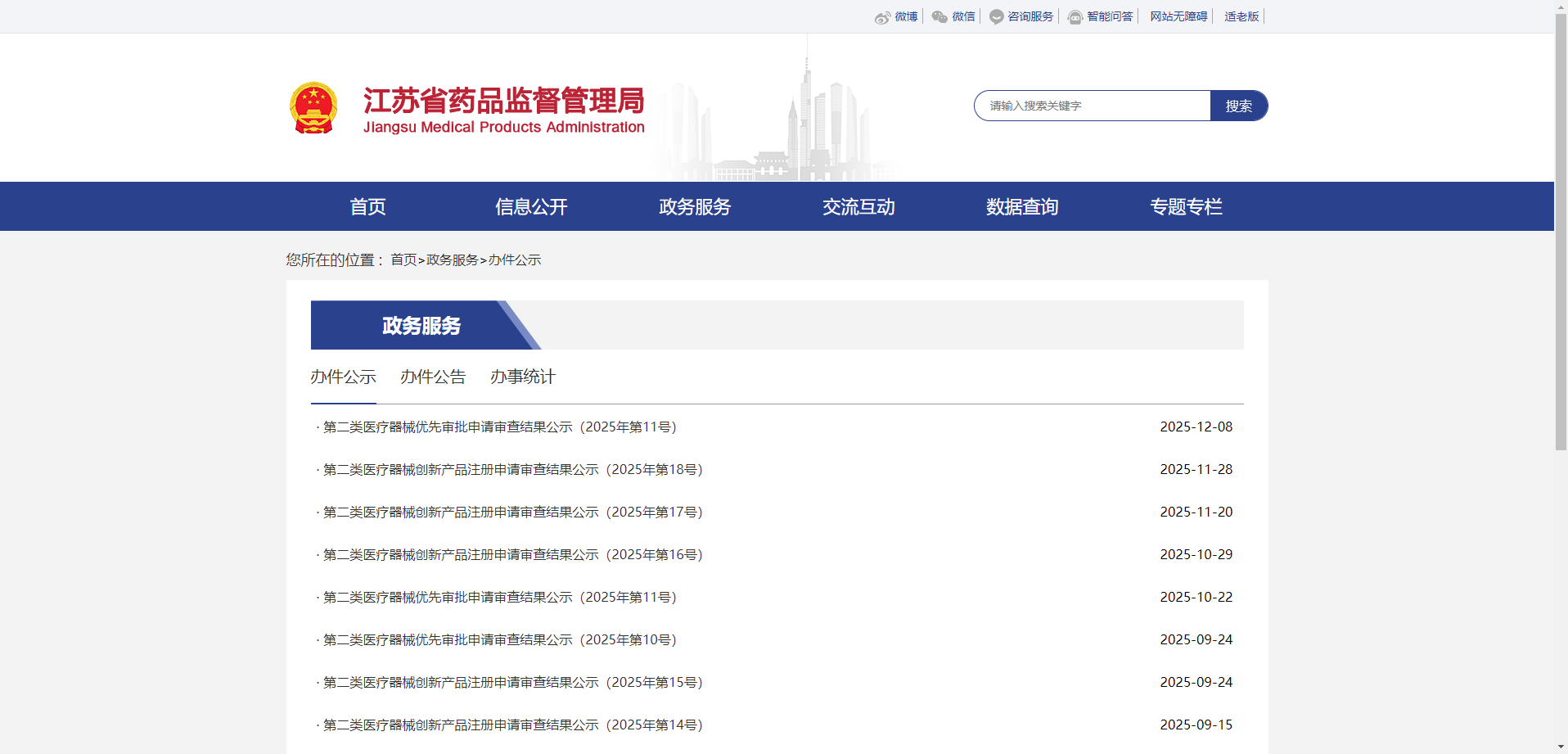 第二类医疗器械(中风险)的创新审批和优先审批由各省市药监局负责,查询需依托对应地区药监局官网,查询逻辑统一但入口分散: