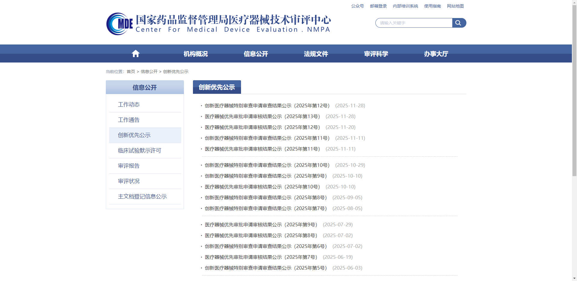 第三类医疗器械(高风险)的创新审批和优先审批由国家药监局统一负责,相关信息集中在以下两大平台: