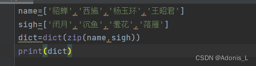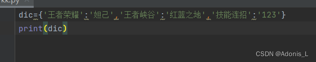 字典包含两部"value”+“key”,并且在"value"和"key"间需要使用冒号隔开(注意是英文状态下),相邻的两个元素用逗号隔开,所有元素放在一个大括号“{ }”中。