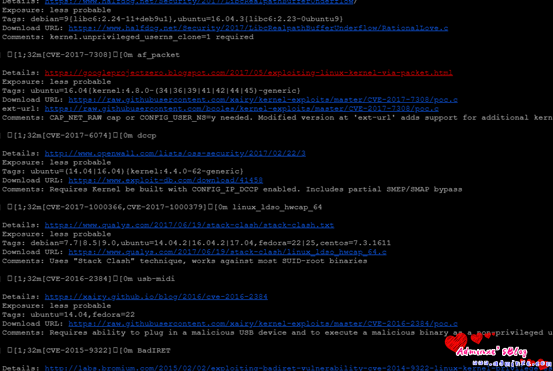 可以看到还是存在很多提权漏洞的 但是 linux的主机 不建议提权 Linux主机以内核提权为主 ,容易崩