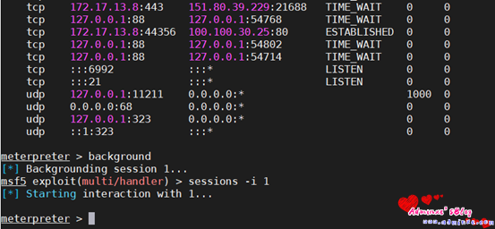 执行 我们这里可以看到msf里面已经是建立起了会话 就显示了建立一下会话断开了