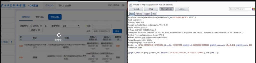利用bp进行爆破信息管理系统,毫无疑问,我们爆破进去了,成功拿下第一个系统站点,仔细看了下,并没有什么利用点,一切功能点都被写死了,所以,我们开始第二个系统,通过撞库弱口令,我们成功进入OA管理系统