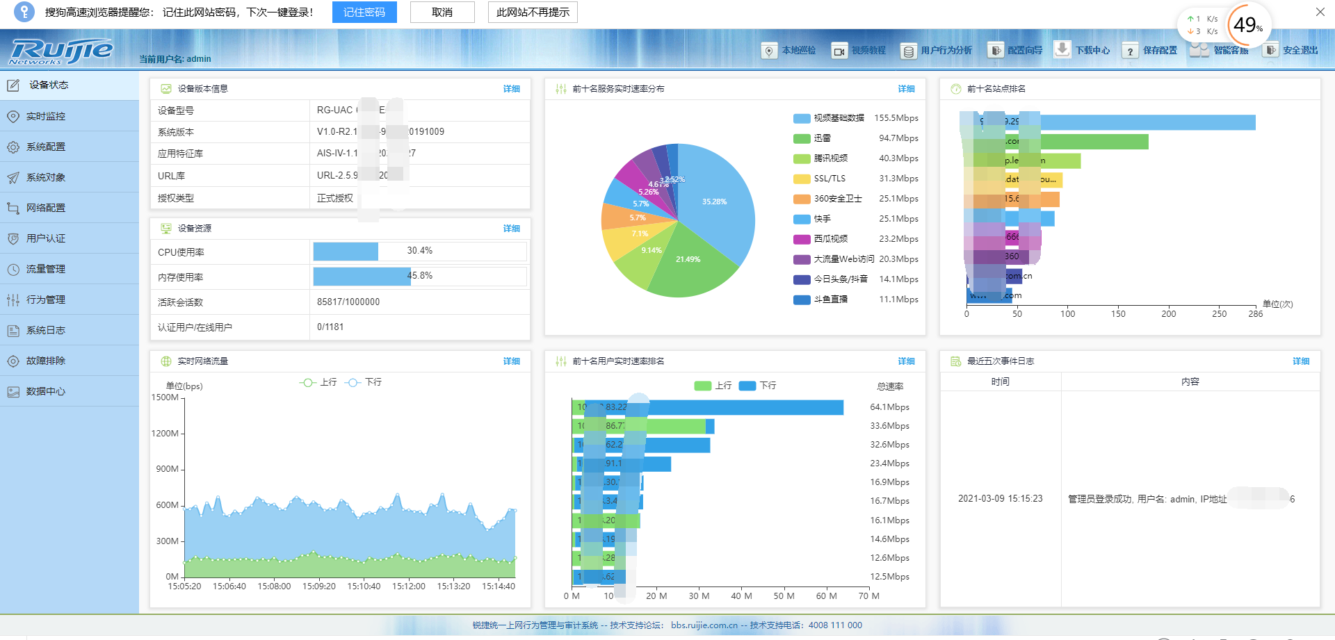 2021年3月8日,锐捷RG-UAC统一上网行为管理审计系统存在信息泄露漏洞,攻击者可以通过审查网页源代码获取到用户账号和密码,导致管理员用户认证信息泄露。