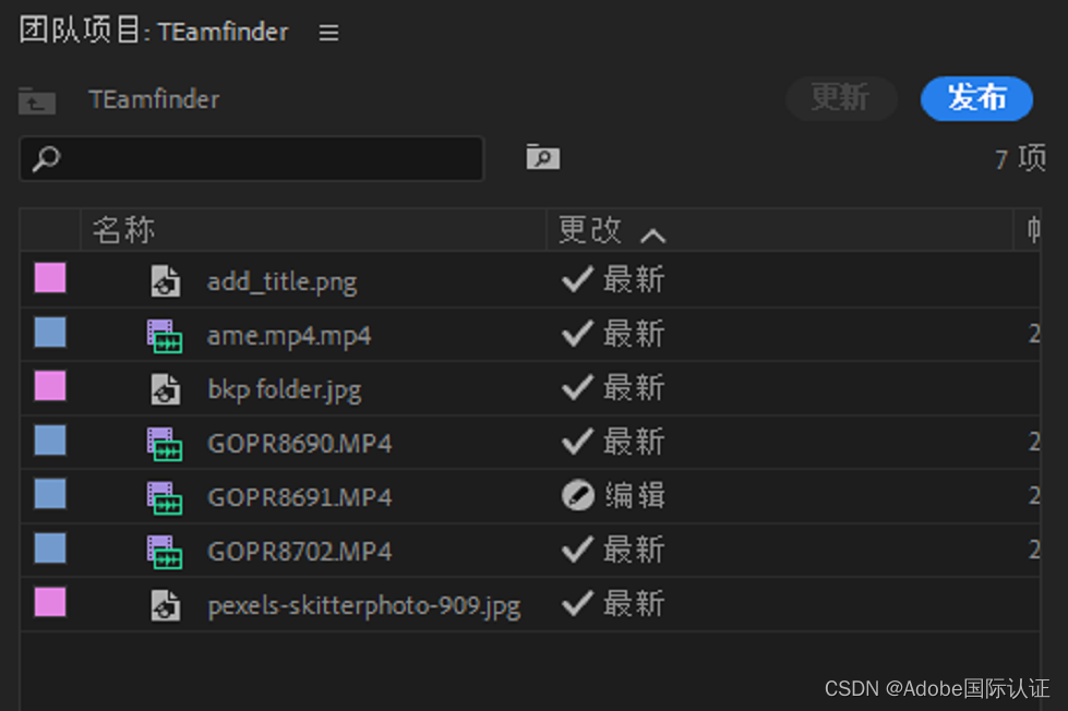 当您处理团队项目时,项目面板标题栏中的图标以及媒体上的徽章将指示您何时处于离线状态。
