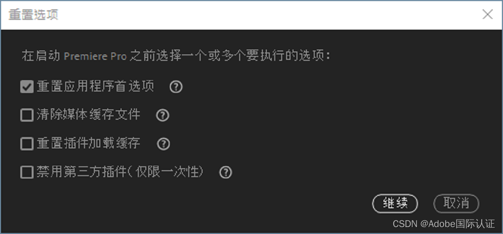 使用Premiere Pro中全新的启动时重置选项进行定期维护和清理系统,然后更新到应用程序的新版本或诊断和排除应用程序问题