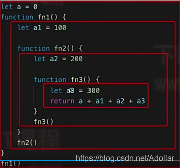 // 闭包 // 函数作为返回值 function create() { let a = 100 return function () { console.log(a) } } const fn = create() const a = 200 fn() //a = 100 //函数作为参数 function print(fn){ const a = 200 fn() } const a = 100 function fn(){ console.log(a) } print(fn) //100