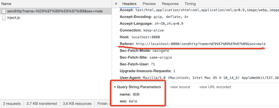 我们可以看到比Chrome中更详细的信息,最下面的蓝色区域,对应的是请求URI的Refere内容,左侧的蓝色区域是标准的ABNF语法,有兴趣的可以去了解了解
