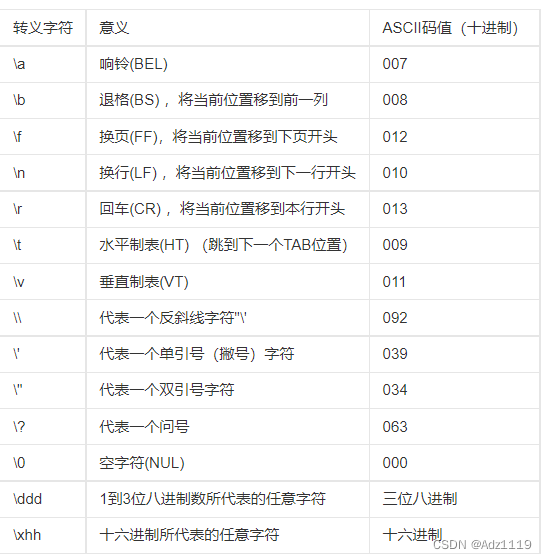 注意:\xlf由于十六进制中没有l,十六进制中有0~9以及a~f(或A~F),所以不是合格的转义字符。\018按开头来看是一个八进制表示形式,而八进制只有0~7这8个元素,所以使用8是不合法的,这也是一个不合格的转义字符。