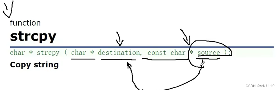 strcpy(arr,"hello");要把hello拷贝到arr里面去的时候"hello"传参的时候传过去的是h的地址