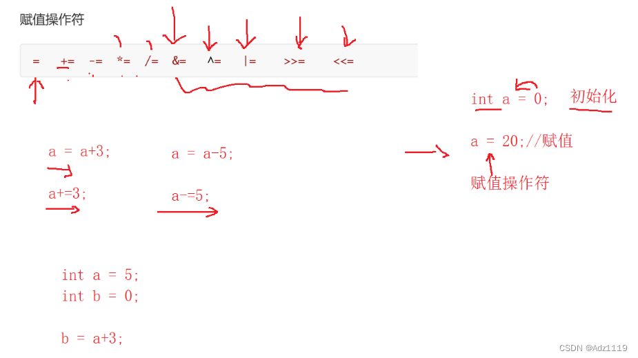 已经有变量,后来我要改它的值,第二个=叫赋值操作符