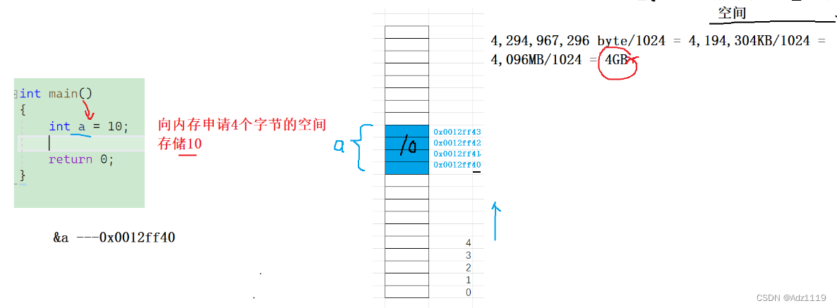 2的32次方个二进制序列作为2的32次方个地址,就能够管理2的32次方个字节的空间