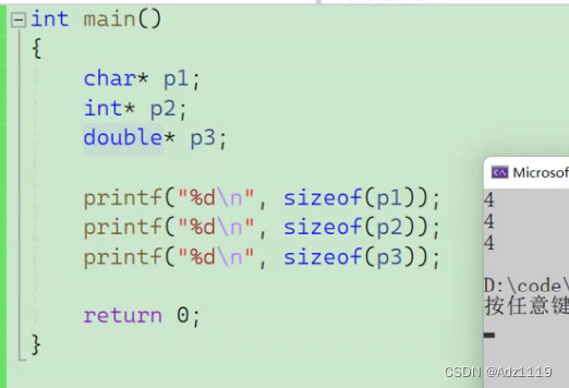 double是八个字节,但在32位平台下存放你的地址也就需要四个字节而已