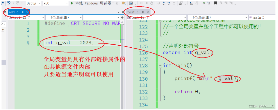 2.修饰全局变量(static修饰全局变量影响了作用域,本质上修改的是它的链接属性)