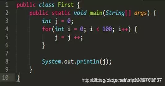把 j = j++ 改成 j++ 就输出100。