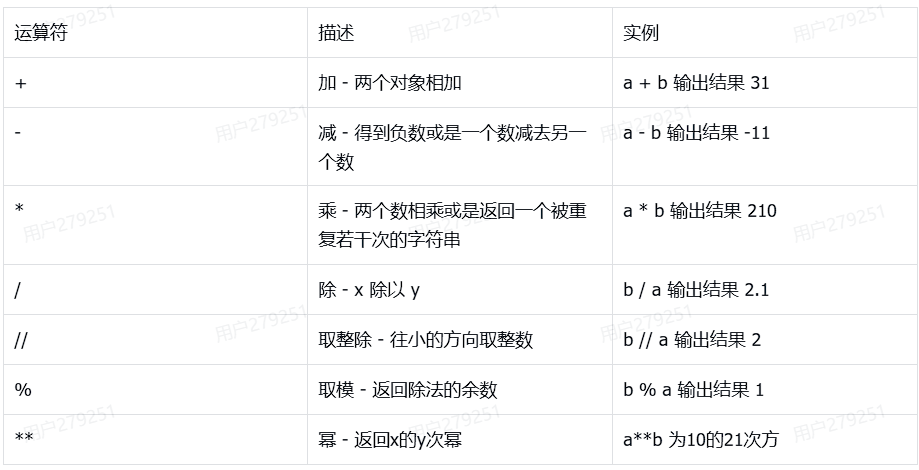 +,-,*,/(除法),%(取余),**(幂)。 -
