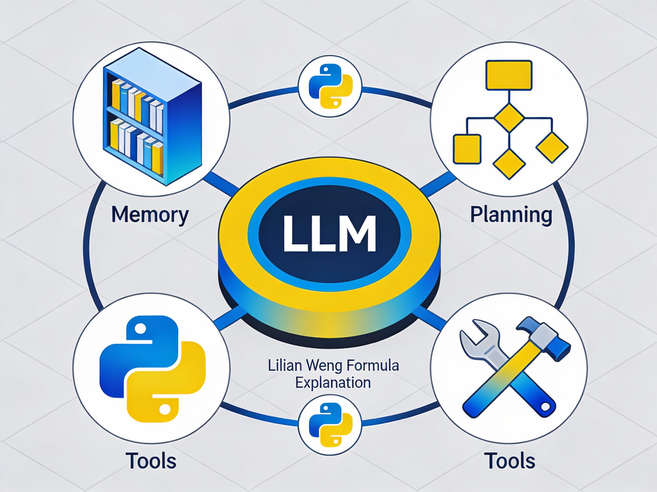 Agent = LLM(大脑) + Planning(规划) + Memory(记忆) + Tools(工具使用)