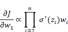 于是我们可以开始推导,根据链式法则,计算损失函数 J 对某一层权重 w1 的梯度时,需要将路径上的所有梯度相乘: