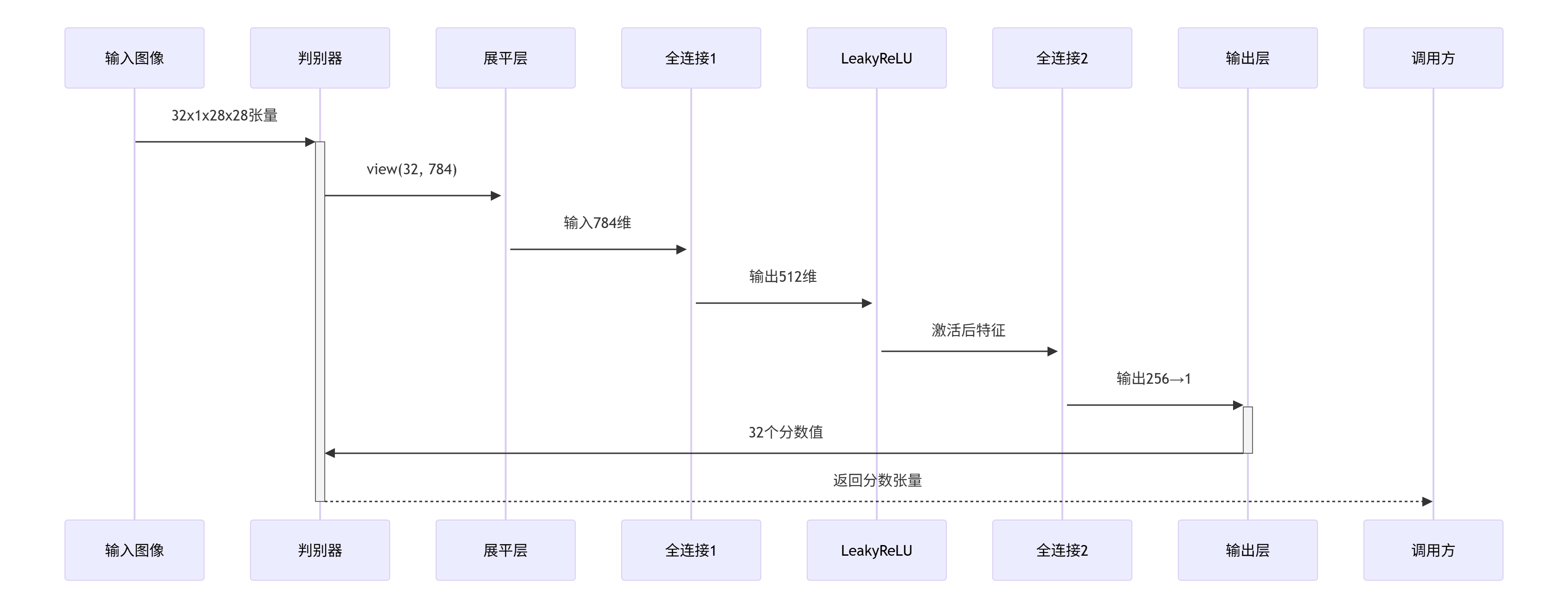 输出 (Output):一个单一的标量值,通常在0到1之间。这个值代表了判别器认为输入图像是“真实”的概率。