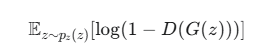 2.G 只能通过改变自己生成的图片 G(z) 来影响第二项。为了让整个表达式变小,G 必须让第二项 log(1−D(G(z))) 的值变得非常小(一个绝对值很大的负数)。