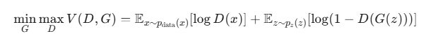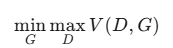 原始GAN论文将这个过程描述为一个二人零和的最小最大博弈。其目标函数如下:
