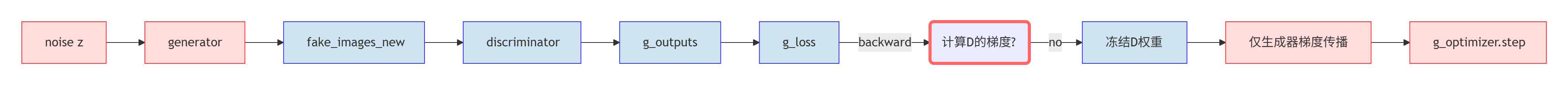 梯度隔离必要性:此时只更新判别器,需阻止生成器从此次判别中获益