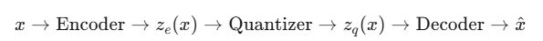 通过这三个损失项的共同作用,编码器学会了生成能够被码本很好地量化的表示,码本学会了捕捉数据中的关键特征,而解码器则学会了从这些离散的编码中重建高质量的数据。