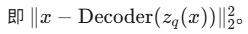 Decoder:条件于 zq 重构 x。