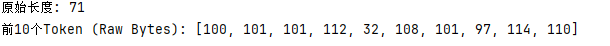 print(f"前10个Token (Raw Bytes): {tokens[:10]}")