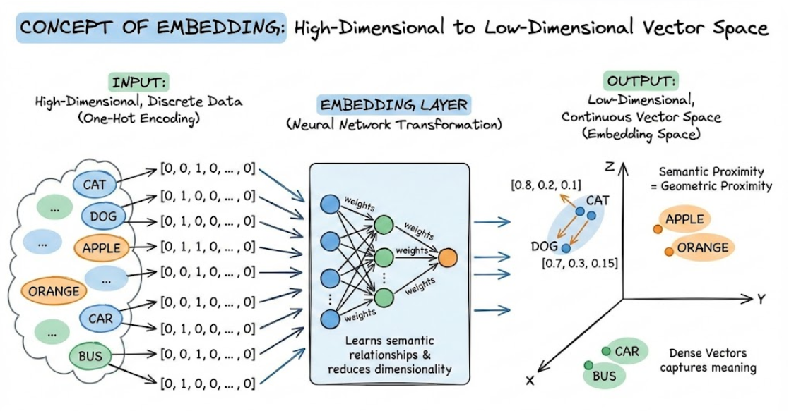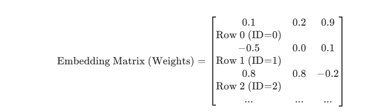 2. Embedding 层:实现 token ID 到向量的查找表。