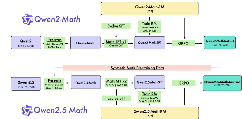 这是最大层面的闭环,连接了 Qwen2-Math 和 Qwen2.5-Math。