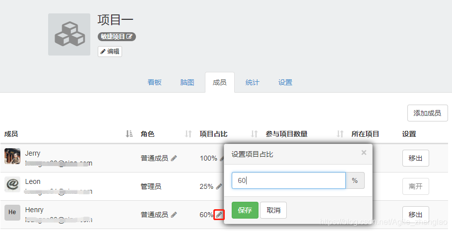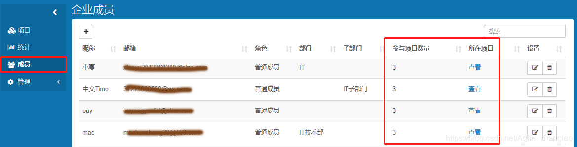 6. 站在管理层的角度,也可以清晰的看到一个成员参与了几个项目以及在每个项目上的占比