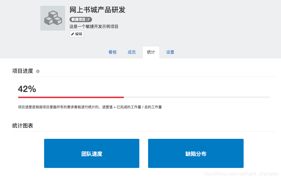 4.跟踪进度有燃尽图,项目进度条还有整个团队的速度都可以查看