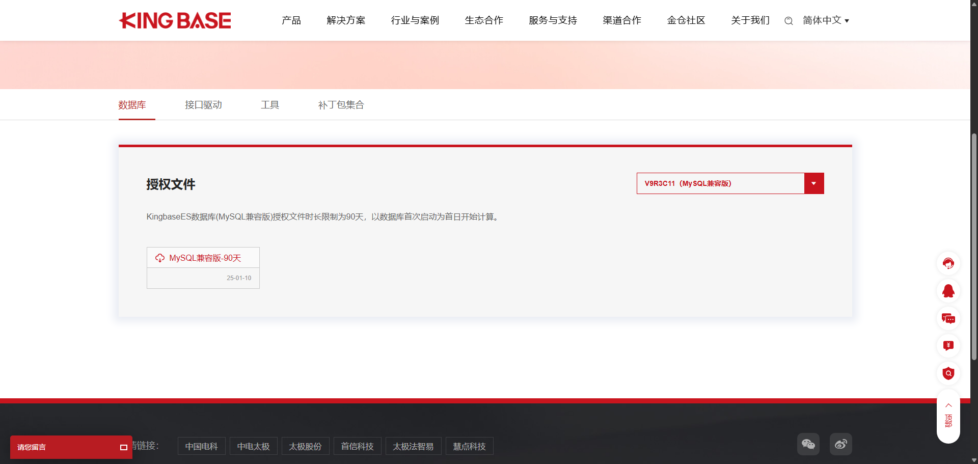 于是进入人大金仓官网,找到授权文件下载,可是: